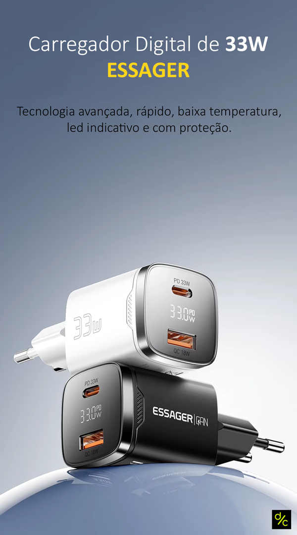 Chega de ficar esperando horas e horas para carregar os dispositivos. Com o carregador de 33w da Essager você vai perceber a diferença de um carregamento Turbo.